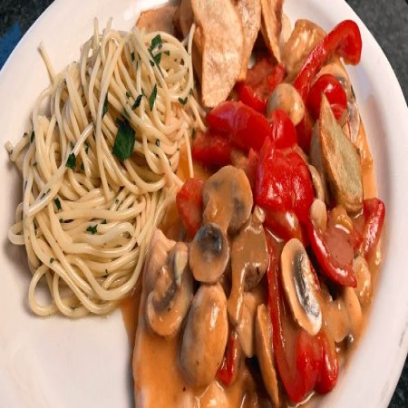Pollo. Served with pasta or salad except for grilled chicken over sauteed spinach.